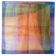 O trabalho de arte de abstrato original de ZoeSPEAK neste Azulejo cerâmico de 6" sugere uma visão, através de uma janela, de uma paisagem. A borda está em tons de azul, e o interior está em tons de laranja e verde com realces amarelo pálido e rosa. Há bandas lineares com buracos perfurados neles cruzando a design.