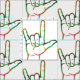 Adicione um toque de Linguagem de Sinal ao seu projeto de costura com este Tecido de excelente com várias mãos Abstrato ASL I Love You. Saias, Camisas, Travesseiros, Quilts e muito mais. Da nossa coleção de Tecidos de linguagem de sinais.