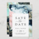 Esta abstrato celestial salva a data do anúncio é perfeita para um casamento moderno. O design elegante e elegante apresenta azul marinho escuro e cor-de-água rosa pincelada com salpicos de ouro, criando um espaço externo e o céu noturno.