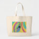 A pintura de pincelada de abstrato de traçados cor-de-rosa, azuis, amarelos e verdes em cores brilhantes, vivas, com marcador de posição para uma inicial, é impressa em sacos de tote personalizados.