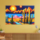 A pintura de canvas retrata uma paisagem desértica com um céu vibrante à luz do crepúsculo no estilo distinto do Cubismo. A composição apresenta formas fragmentadas e geométricas que reimaginam a representação tradicional do deserto e do céu. As cores do céu crepúsculo são ricas e vibrantes, criando um contraste impressionante contra as tonalidades arenosas da paisagem do deserto. A abstração Cubista captura a essência do deserto, infundindo-o com energia e dinamismo. A pintura convida os espectadores a explorar a cena a partir de múltiplas perspectivas, engajando sua imaginação e permitindo-lhes interpretar o céu do deserto e do crepúsculo de sua maneira única. Esta trabalho de arte inspirada em Cubist traz um ambiente cativante e surreal a qualquer espaço, acrescentando um toque de intrigas artísticas e evocando uma sensação de maravilha pela beleza da natureza.