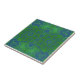 Este azulejo de cerâmica decorativa é uma peça de arte espantosa que irá adicionar um toque de elegância a qualquer sala. O intrincado design apresenta um padrão simétrico com um movimento azul central contra um fundo verde. A mistura de padrões geométricos e florais cria um efeito visualmente atordoante e este azulejo é certamente um começo de conversa e fará uma bela adição a qualquer casa.