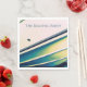 Este guardanapo de papel apresenta uma obra de arte original de ZoeSPEAK, uma vista aproximada das curvas do casco de um barco à luz da tarde. A obra de arte é feita em tons de azul e branco quente, com amarelos da luz solar. Há um texto opcional (A Festa de Barco) que está configurado para você personalizar ou excluir se preferir. Se você está em um barco com amigos, é uma festa de barco.