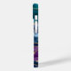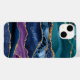 Azul, lacre e violeta roxa se combinam para fazer um design abstrato e espantoso nesta capa de telefone. As cores são separadas por uma lente de brilho dourado, e seu nome ou monograma aparece em azul claro perto do centro.