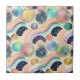 Um azulejo cerâmico de padrão vibrante e lúdico, com ondas e arcos fluidos em tons pastéis de arco-íris, intercalados com círculos cintilantes, placas coloridas e sotaques pontilhados por polca. Texturizado com efeitos dourados, cor-de-rosa, azuis e verdejantes e colocado sobre um fundo sutilmente brilhante, este design rebenta com energia alegre e encanto artístico. Ideal para espíritos criativos, estética lúdica e celebrações coloridas.