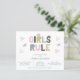 Este convite para Chá de fraldas de Abstrato de Aquarela de Orçamento apresenta um texto decorativo Regras de Girls e triângulos de multicores. Personalize-o e aproveite-o. Observe que os envelopes NÃO estão incluídos neste design. Se precisar de envelopes, verifique nossa coleção ou adquira-os separadamente do mercado.