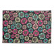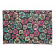 Uma mão desenhou um padrão abstrato floral em uma atraente paleta de cores composta por discos circulares dispersos e variados com raios como quebras para dividir as pétalas e com centros pintados.