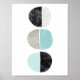 Abstrato, geométrico, ao estilo escandinavo, meio círculo poster em turquesa, cinza e preto.