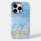 Um design de mídia mestiço abstrato em uma paleta azul, turquesa e amarela.