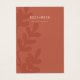 Este design abstrato e limpo de tons de terra apresenta uma forma de silhueta botânica desenhada à mão em marrom-terracota e texto em elegante cor creme. Personalize-o com seu nome ou texto de sua escolha. Observe que os marcadores de buraco estão impressos, não são prerecortados. Localize muitos itens correspondentes da mesma coleção na loja. Copyright © 2020 Iveta Angelova para Pink Lemon Paper Co, Todos os direitos reservados