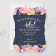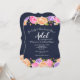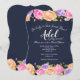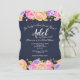 Um convite floral deslumbrante com um fundo azul-marinho e uma abundância de flores rosa, lavanda e amarelas bordejando as bordas superior e inferior do cartão. (Design por Freepik).<br/>() O cartão é fácil de personalizar com sua redação, fonte, cor da fonte e escolha de seis tipos de papel.<br/>() Não é exatamente o que você está procurando? Todos os nossos produtos podem ser personalizados para atender às suas necessidades sem nenhum custo adicional.<br/>() Basta entrar em contato conosco em askcottonlamb@gmail.com<br/>() Produtos coordenados disponíveis: