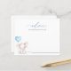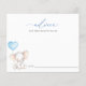 A placa de atividade do chá de fraldas apresenta elefante de aquarela com balão azul. O cartão de aconselhamento incita os hóspedes a partilharem conselhos para os pais se prepararem para o bebê.