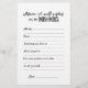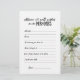 Um cartão de "Bem-vindo" moderno e minimalista em preto e branco. Deixe sua mensagem e conselhos para a noiva e o noivo com esses doces cartões. Eles combinam com a nossa gama de jogos de chá de panela e casamento para que você possa criar um belo evento coordenado! Esta é uma atividade agradável para uma chá de panela, festa de noivado, festa de solteira ou recepção de casamento.
