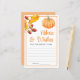 Celebre o amor e a risada com o nosso Conselho e Desejos Caiam no Jogo do Chá de panela da Abóbora! Apresentando ilustrações encantadoras do outono com abóboras, folhas e tons de queda aconchegantes, este cartão de jogo adiciona calor sazonal ao seu chá de panela, ao mesmo tempo que dá aos hóspedes a oportunidade de compartilhar conselhos sinceros e desejos de felicidade para a futura noiva. Recursos: - design de queda adorável com abóboras e detalhes rústicos; - Espaço para os hóspedes escreverem conselhos pessoais e desejos doces; - Manutenção perfeita para a noiva do tesouro após o chá; Excelente para chás de panela de outono, festas temáticas de colheita ou celebrações rústicas Uma adorável mistura de sentimentos e encanto sazonal—torna o seu chá de panela memorável com este jogo ponderado.
