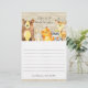 Este cartão de chá de fraldas de animais de floresta neutro em termos de gênero apresenta o título, "Conselhos e Bem-Vindo" e o seu texto personalizado na frente. Ambos os lados têm um padrão de latido leve. Use o formulário modelo para adicionar seus detalhes. O recurso Personalizar permite alterar o estilo da fonte e adicionar ou excluir texto. Este cartão pode ser usado para desejos para a nova mãe, para os pais serem ou para o bebê a caminho.