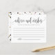 Peça aos hóspedes que deem os seus conselhos e desejos com este cartão de aconselhamento personalizável. Ele apresenta caligrafia negra moderna e um padrão de confete caprichoso. Personalize adicionando seus próprios detalhes. Você também pode mudar a imagem traseira para uma foto ou qualquer outra imagem. Este cartão moderno de conselhos e desejos é perfeito para casamentos, chás de fraldas, chás de panela, e muito mais.