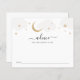A placa de atividade do chá de fraldas apresenta nuvens de cinza d'água e estrelas douradas. O cartão de aconselhamento incita os hóspedes a partilharem conselhos para os pais se prepararem para o bebê.
