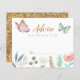 Cartões de chá de fraldas com tema de borboletas bonitas, com arte ilustrada à mão, de borboletas cor-de-rosa e verde-menta, com botânicos coloridos no fundo. Este design de tema cor-de-rosa e dourado é excelente para o chá de uma menina.