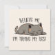Capture o charme relativo de relaxamento com este 'Acredite, estou tentando meu melhor! cartão de saudação! Apresentando um adorável gato adormecido aninhado numa pose acolhedora, esta trabalho de arte encarna perfeitamente o esforço que todos nós damos - mesmo que seja enquanto dormia. Um presente encantador para amantes de gatos e para quem gosta de um pouco de humor no seu moinho diário.