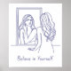 Esta poster motivacional apresenta a mensagem empoderadora "Acredite em si mesma" com uma ilustração minimalista de uma mulher que encara seu reflexo no espelho. Um belo e emocional lembrete de autoconfiança e força interna — perfeito para quartos, espaços de autoassistência, escritórios de terapia ou cantos criativos.