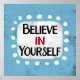 "Acredite em si mesmo" é uma citação inspiradora ou motivacional bonitinha com uma forma de sotaque branca cercada por pontos brancos texturizados.