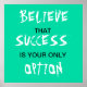 Acredite que o sucesso é a única poster - poster motivacional para a academia ou qualquer área de exercícios para fazer você pensar e acreditar no sucesso.