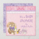 Esse filhote adorável sorri para seus convidados e os convida a compartilhar seu dia especial para seu chá de fraldas. O trabalho de arte é de cor aquosa manual e contém um filhote recheado com arco roxo no pescoço, um pacificador roxo e botas roseáveis cor-de-rosa. O fundo é um rosa suave com espirais brancas pintadas à mão, um local com pontos de cruz retos pintados à mão e uma borda de rick sobre uma espiral contemporânea no topo. O verso tem um fundo roxo e lavanda com pontos e círculos. Por cima desta borda está uma garrafa de bebê, um binkie e o par de calçados de rosa bud. Há uma grande variedade de produtos projetados para coordenar um conjunto completo de bebês. VOCÊ TAMBÉM PODERIA GOSTAR DE: