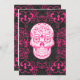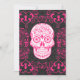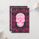 Crânio de Açúcar Quente e Negro e Design de Grunge Gótico Rosa que é excelente para o Dia dos Mortos ou Halloween ou qualquer pessoa que ame crânios ou góticos. O fundo é uma sutil cor damasco preta e cinza. Embelado com rosas cor-de-rosa, floresce e espirra com um crânio de açúcar rosa e branco no meio.