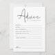 Este novo cartão de desejos e conselhos apresenta uma fonte escondido à mão e um design moderno minimalista com uma combinação de cores escura e branca. Este design minimalista é perfeito para o seu chá de panela moderno ou clássico, chá de casais ou evento de casamento. Edite facilmente todas as cores para atender às necessidades do seu evento.