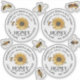 Quatro círculos transparentes do rótulo do mel de 2,5" num modelo de 6". À prova d'água. Ajustados na boca larga Mason Jar Lid e pequenos potes de mel. Rótulo de Mel de Girassol com Abelha sobre fundo branco transparente ou mate.
