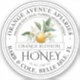 Este rótulo tem campos editáveis para o seu nome apiário, nome do apicultor e localização. Descrição do produto editável e nome do produto. Ilustração laranja e borda dupla. A descrição do Nome de Estado pode ser alterada para o seu endereço ou informações de contato. Ajustados de tampas de jarro.