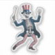 Add some fun and patriotic flair with this lively sticker featuring a dancing skeleton decked out in classic American red, white, and blue attire, twirling a cane with flair. Perfect for decorating laptops, water bottles, notebooks, or any surface that could use a touch of spirited charm.