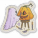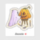 An unique design of a ghost carving a pumpkin sticker suitable to put on everything with elegant modern look, you can give to someone you like as a gift