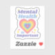 Você quer promover a conscientização sobre a importância da saúde mental? Este bonitinho vinil à prova d'água com um coração de arco-íris e a legenda "Saúde mental é importante" o ajudarão na sua missão.