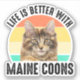 A Vida É Melhor Com Maine Coons. Este cúmplice engraçado e fofo do gato Maine Coon é um presente perfeito para uma mãe de gato ou um pai de gato que é dono do gatinho Maine Coon. Excelente para homens, mulheres, rapazes, raparigas, adolescentes e crianças que adoram gatos Maine Coon. Maine Coons são frequentemente chamados de Gentle Giants por causa do seu grande tamanho e gentil caráter. Se você é o dono orgulhoso de um gato Maine Coon, esta design é para você! Inclui um gráfico fofo de um rosto de gato Maine Coon colocado contra um pôr do sol retrô.