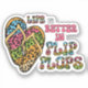 Um adesivo brincalhão com um par colorido de flip-flops com a frase bonitinha "A vida é melhor em Chinelos." Esta trabalho de arte alegre captura o espírito descuidado do verão, férias na praia e vida costeira. Presente ideal para amantes de praia, viajantes, surfistas, salgueiros, e qualquer um que viva por dias ensolarados. Perfeito para aniversários de verão, getaways tropicais, viagens de praia ou presentes inspirados em férias.