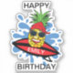 Engraçado design de abacaxi surfando com texto Feliz Aniversário e um nome modelo. Clique em personalizar, editar texto ou excluí-lo e adicione seu nome.