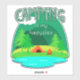 Um adesivo bonito que diz "Acampamento é meu lugar feliz" junto com uma bela imagem de acampamento por um lago com montanhas ao fundo e árvores. Perfeito para um laptop, capa de telefone, capacete, skate ou em qualquer outro lugar que você possa pensar para colá-lo.