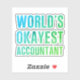World's Okayest Accountant in sans-serif uppercase block lettering in gradient grunge blend of turquoise blue and light green.