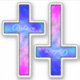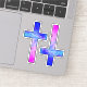 Partilhe a sua fé com estes autocolantes cor-de-rosa e azuis. O texto atual diz "Acredite" e pode ser alterado para personalizar seus adesivos.