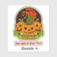 Cabeças de abóbora com o Chapéu das Bruxas perto da Casa Assombrada - no Halloween - Add the Name or Other Text you want - Celebre o Halloween com este excelente - você pode mudar o tamanho do adesivo - 6 tamanhos disponíveis. - Veja em minha loja muitos mais excelentes de adesivos do Dia das Bruxas, Configurações de Mesa de Festas e muito mais.