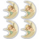 Os autocolantes inspirados por um adorável anjo da lua vitoriano. O anjo está vestindo um vestido de turquesa com um padrão de estrela e está descansando na lua crescente. Útil para fazer de cartões e outros fins decorativos.