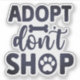 Este simples adesivo apresenta a frase "Adotar não Comprar" com um design de osso e pata giro. Perfeito para amantes de cães e animais de estimação. Feito com vinil durável, este adesivo é excelente para laptop, garrafas de água e muito mais.