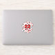 Esta equipe colore adesivo de futebol para meninas ou meninos apresenta a imagem de um punhado de bolas de futebol vermelho, preto e branco de tamanho variado, sobre as quais você pode personalizar o nome do jogador, número de camisa, nome da equipe e nome do mascote - por katz_d_zynes