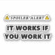 Recuperação dizendo em programas de recuperação de 12 etapas, afirmando o óbvio e engraçado que Spoiler Alert It Works If You Work , para recuperar viciados alcoólicos ou no trabalho como consultor de abuso de substâncias. Trabalhe no duro e veja os resultados. Humor no local de trabalho, reuniões de recuperação, convenções, conferências.