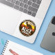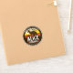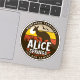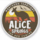 Um design de pôr do sol ousado e inspirado em vintage celebrando Alice Primavera, no centro vermelho da Austrália. Esta trabalho de arte redonda apresenta uma silhueta impressionante de um canguru na esfrega com um fundo solar vintage.