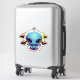Uma alienígena de bebê azul, enquanto OVNIs estão nas costas.