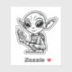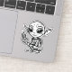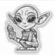 Este adesivo apresenta uma alienígena branca e preta com orelhas pontiagudas, agachadas para baixo, segurando um dispositivo de walkie-talkie estilo retrô. Com uma design divertida e semelhante a um desenho animado, os grandes olhos da alienígena e um aspecto curioso o tornam perfeito para decorar laptop, notebooks ou garrafas de água. Ideal para fãs de ficção científica, aventuras espaciais e personagens esquisitos, este adesivo traz uma vibração fora do mundo para qualquer superfície.