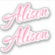 Nome de Alison na fonte de script cursivo em rosa bonito x2. Duas cópias de nome.
