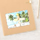 Aloha! Dream Landscape com uma garota nos convidando para surfar e divertir-nos, esporte, em liberdade de cheio. Desenho criado com o gráfico Computador 3d 2d.
